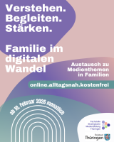 Die Fachstelle Strategische Medienbildung Thüringen führt in Kooperation mit dem Thüringer Ministerium für Soziales, Gesundheit, Arbeit und Familie (TMSGAF) und dem Ministerium für Bildung, Wissenschaft und Kultur (TMBWK) 2026 ein neues Elternabend-Format durch:
